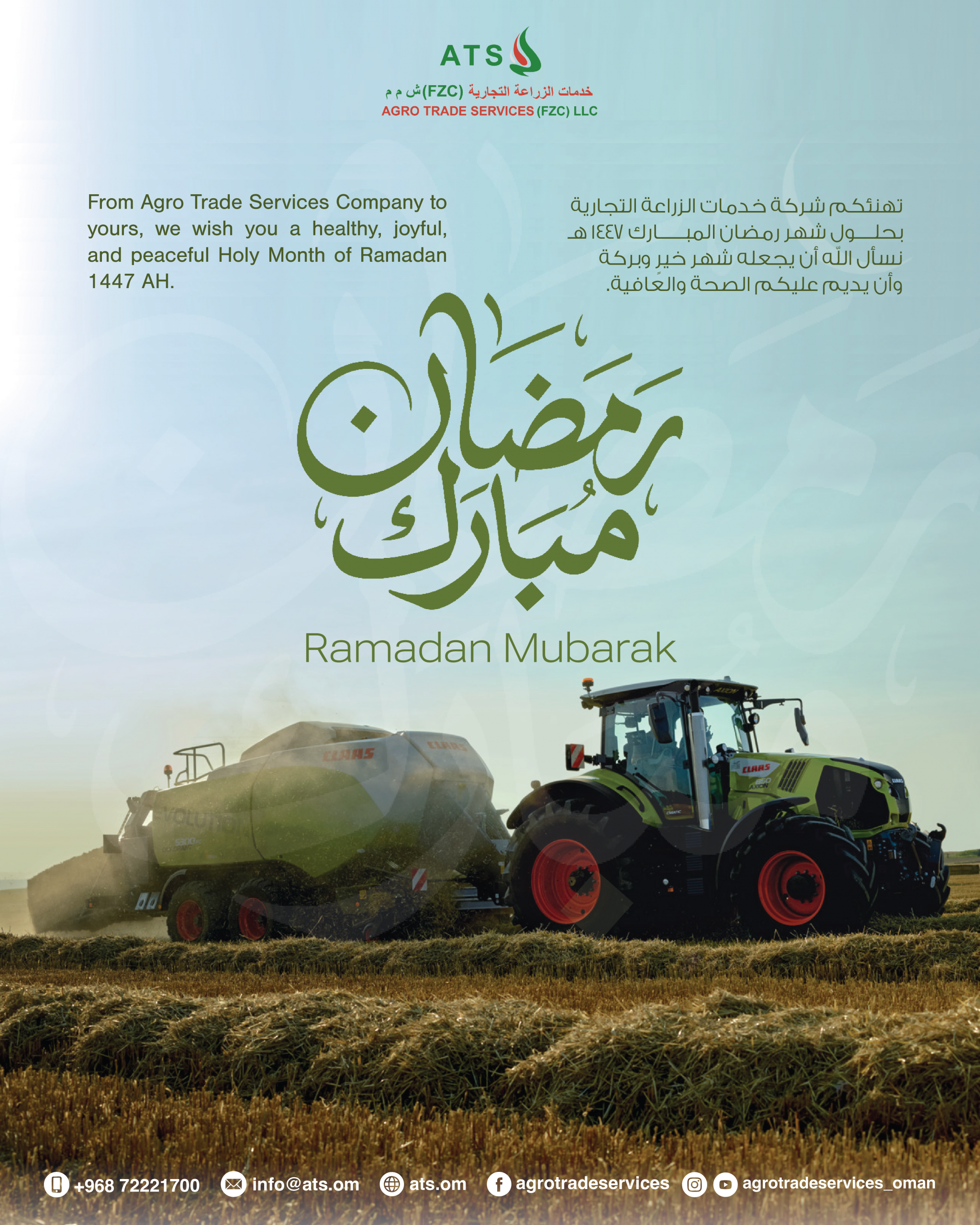 On the occasion of the Holy Month of Ramadan 1447 AH, Agro Trade Services (ATS) extends its sincere greetings and best wishes to our valued clients and partners. May this blessed month bring peace, prosperity, and continued success to you and your families. We pray that it returns upon you in good health and happiness.